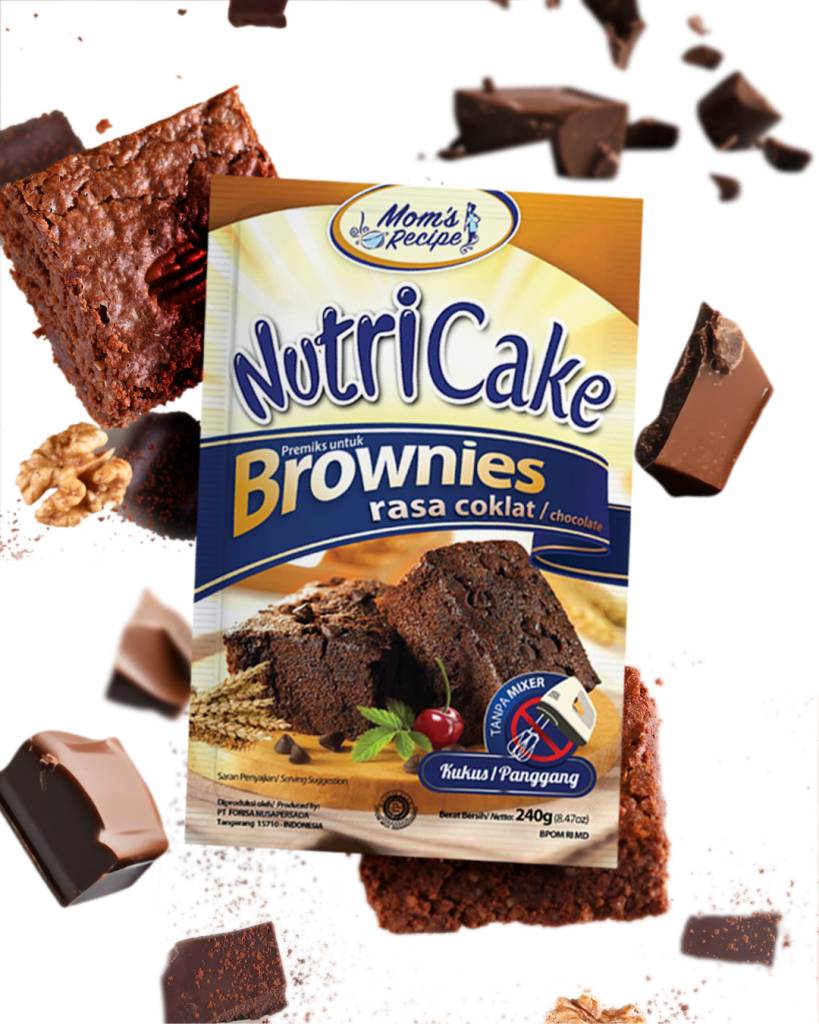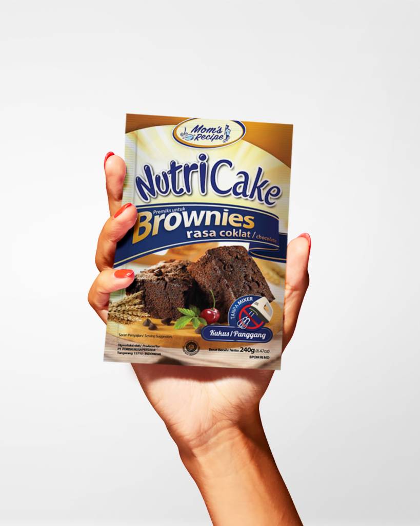 Nutricake Brownies is a ready-to-make chocolate cake mix. The goal was to create a design that clearly shows what the product is and how easy it is to use. We used an appetizing image of the finished brownies to highlight the result customers can expect, along with a visual cue that no mixer is needed—perfect for home bakers looking for convenience.